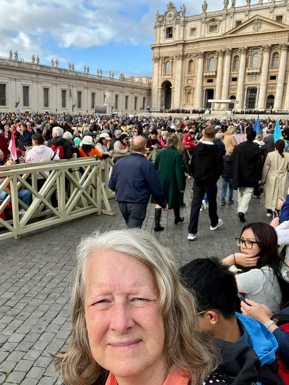 Awww...our last day in Rome and the end of our fabulous trip! For me, this day was the icing on the cake. Kevin was done with standing in lines, so I headed to the Vatican on my own at sunrise. I waited over an hour and a half to enter St. Peter's Square for Pope Leo's General Audience. These are held every Wednesday as his schedule allows. I engaged in conversation with others in line and met newlyweds from Texas in their wedding attire who would receive a special papal blessing during the audience. I also talked extensively with a young Czech who had been a foreign exchange student in a small town near my brother's family in Michigan. He loved being in the U.S. and was hoping to come back for college at the same school my niece graduated from. Yes, another small world encounter!