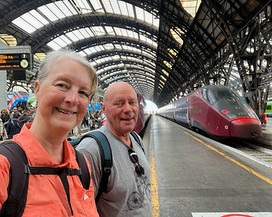 We relied on the kindness of several English speaking Italians to help exchange our tickets for the next train departing at 12:45 pm. It was on time and we relaxed on a comfortable 2 1/2 hour journey to Venice for our 4:00 pm orientation. See you there!