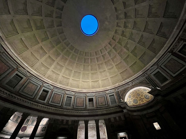The last stop with our local guide was the well-preserved Pantheon with its Roman and Greek architectural styles. The oculus provides the only natural light into the interior of the Pantheon and allows rain to fall freely inside. Some of the notables buried there include the artist Raphael, King Vittorio Emanuele II, and King Umbert I and his wife, Margherita of Savoy, whom the classic pizza is named after.