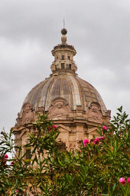 Our itinerary did not include a tour of the inside of the Colosseum but we had that opportunity on our previous trip to Rome. Paolo gave a fact-filled history lesson on the Flavian Amphitheatre (the actual name of the Colosseum). Then we passed the Arch of Titus on our way into the Roman Forum. On this day, the Forum looked even more ancient under the overcast sky. Everyone was shooed out of the grounds at closing time so we continued on a walk taking in other views of the Roman ruins. We climbed atop the Capitoline Hill to the Piazza del Campidoglio, designed by none other than Michelangelo! Earlier, at the Piazza della Repubblica, we got a glimpse of St. Mary of the Angels and the Martyrs, the church Michelangelo designed toward the end of his life. Rome already gave us a twofer in our search!
