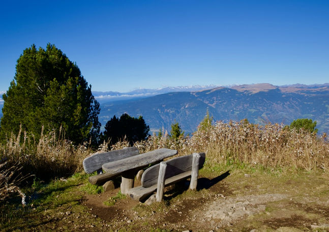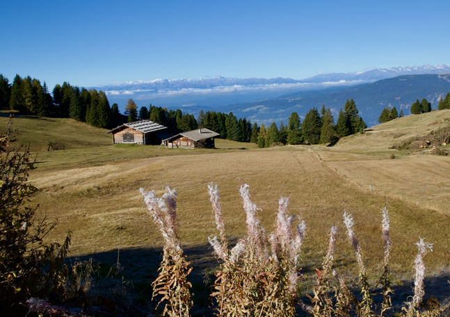 Today the group had a couple of options for alpine activities. We chose to take the bus to nearby Compatsch, the main entry point to the Alpe di Siusi/Seiser Alm, and hike the Trail of the Witches. (There are tales of witches in the area!) Five other adventurous tour mates made the same choice so we ventured out together. The beginning of the trail was quite strenuous and we became fast friends encouraging one another along! It was all worth it as the terrain eventually transitioned to rolling hills and green meadows that were sometimes ringing with cowbells. There were so many amazing views along the trail which, thankfully, was not very crowded. It felt a bit like "Heidiland" and we loved it!