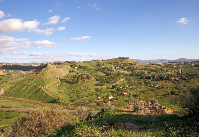 We could have easily been in Greece instead of Sicily when we arrived at the Valley of the Temples (Valle dei Templi). Greek antiquities reign in Agrigento! Like many of the tourist sites in Sicily and throughout Italy, the Valley of the Temples is on the UNESCO World Heritage List. In reality, the temples sit on a ridge, not in a valley. Our local guide, Michele, took us to the Archeaological Museum first. We saw Greek craters which are vessels with wide openings that were excavated from the Greek necropolis of Agrigento. There is one very rare crater still intact with white clay like what is used in porcelain. It dates back to about 430 BC. and features Perseus and Andromeda. The geometric designs and calligraphy-type curlyQ drawings on these ancient vessels have a very modern feel. Such design patterns are used commonly by today's artists. I guess through the cyclical nature of culture, what's old is new again throughout the generations!