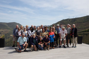 Our three hour bus ride was broken up with a comfort break, and then stunning views of terraced, port producing vineyards in the Douro Valley came into view. The staircased green and gold hills complemented the bright blue sky.The switchback road took us up to the family estate of Quinta de Santa Eufemia. Our host, Maria, showed us the stone that marks the property in the year 1756 for grapes. They are the 11th generation on the land and the 4th generation for port wine production, growing the tinta variety of grapes.