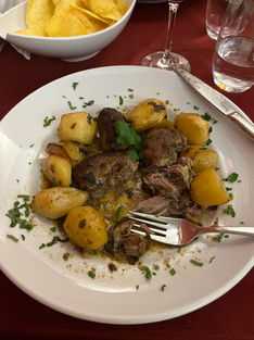 We made time in our meandering for some gelato and souvenirs. Évora is in "cork" country and the souvenir selection reflected that. I never knew so many items could be made of cork! We had many laughs with our group at the evening Happy Hour with buddy introductions. Then the two of us rushed to our reservation at Cafe Alentejo. Pork cheeks were on the menu and soon on our plates. If you have never eaten cheeks, I urge you to try. They are rich and satisfying--melt in your mouth protein!