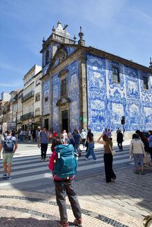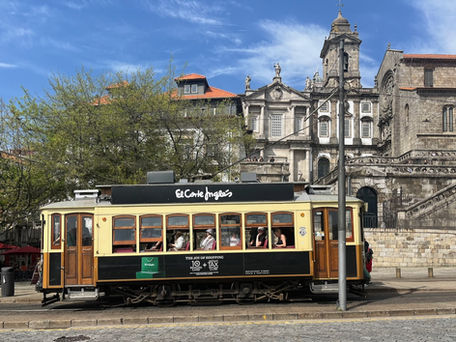 Our bus arrived in Porto late morning, we all dropped our bags at the hotel and split into two groups. Our group met up with Andrea, from Taste Porto, at the Mercado do Bolhão (Big Bubble Market) for our food tour. Kevin recognized one of Andrea's colleagues from an episode he watched recently of, "Anthony Bourdain, Parts Unknown," and got some behind the scenes scoops. Another bit of serendipity I suppose! Back to the food tour, Andrea gave us samples of green wine, canned cod and sardines, and a charcuterie platter of meats. Then we checked out the variety of produce, fish, meats and offals etc. throughout the market. On our way to the next tasting tavern, we were given an architectural tour enhanced with facts of history and Portuguese culture. We passed colorful ceramic designs not just underfoot and on side walls, but also above as one building's exterior ceiling tiles told their own story. Our next meal included rice, chicken sausage and cod cakes paired with rosé green wine. The final meal with, in my opinion, the best wine (red and white port) was an individual meat pie and a "little Jesuit" which is a traditional meringue dessert. Yum! Our entire group rejoined at this last eatery and returned to the hotel with full bellies.
